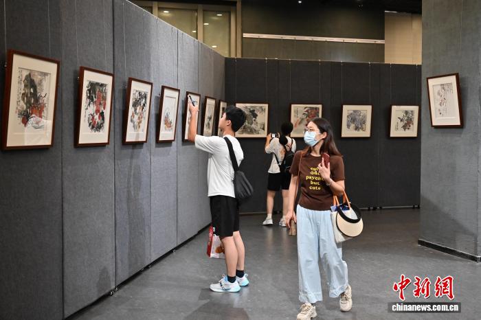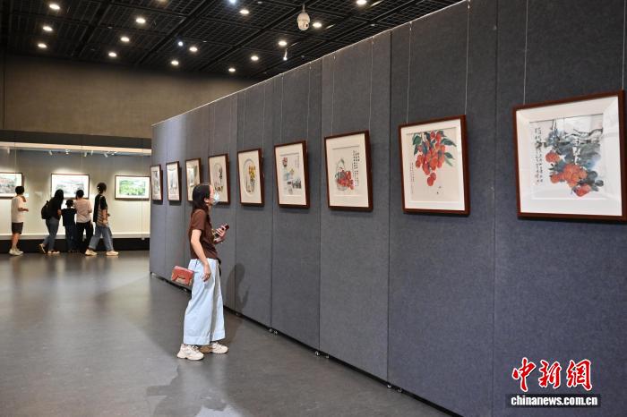 7月19日,“七月荔枝红”主题书画展吸引参观者。近日,该展览在广州市广州图书馆展出,以岭南荔枝为主题,展现广州白云区乡村振兴与岭南文化魅力。中新社记者 陈楚红 摄