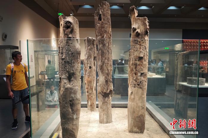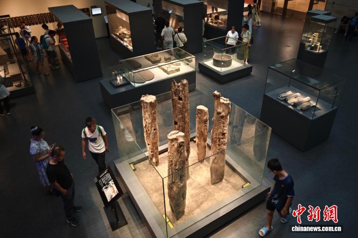 7月30日,江苏南京,观众在六朝博物馆内参观展陈的六朝木桩遗迹。正值暑期,南京文博场馆迎来参观热潮。中新社记者 泱波 摄