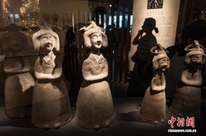 7月30日,江苏南京,观众在六朝博物馆内参观展陈的陶女俑。正值暑期,南京文博场馆迎来参观热潮。中新社记者 泱波 摄