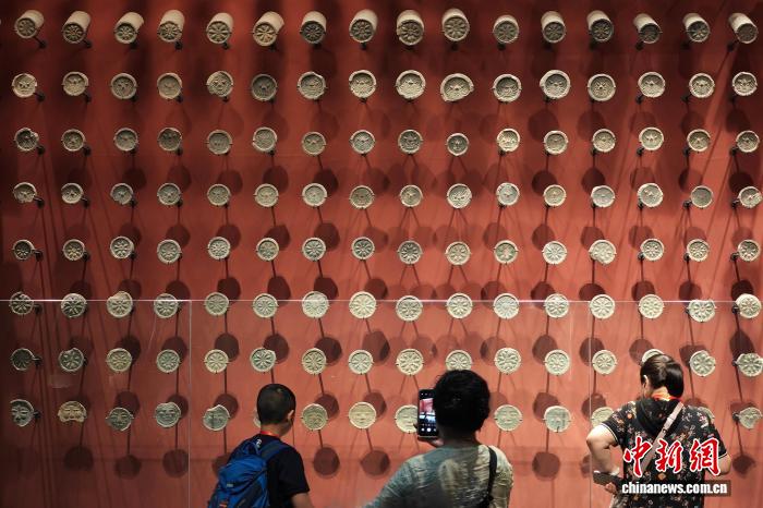 7月30日,江苏南京,观众在六朝博物馆内参观展陈的六朝瓦当。正值暑期,南京文博场馆迎来参观热潮。中新社记者 泱波 摄