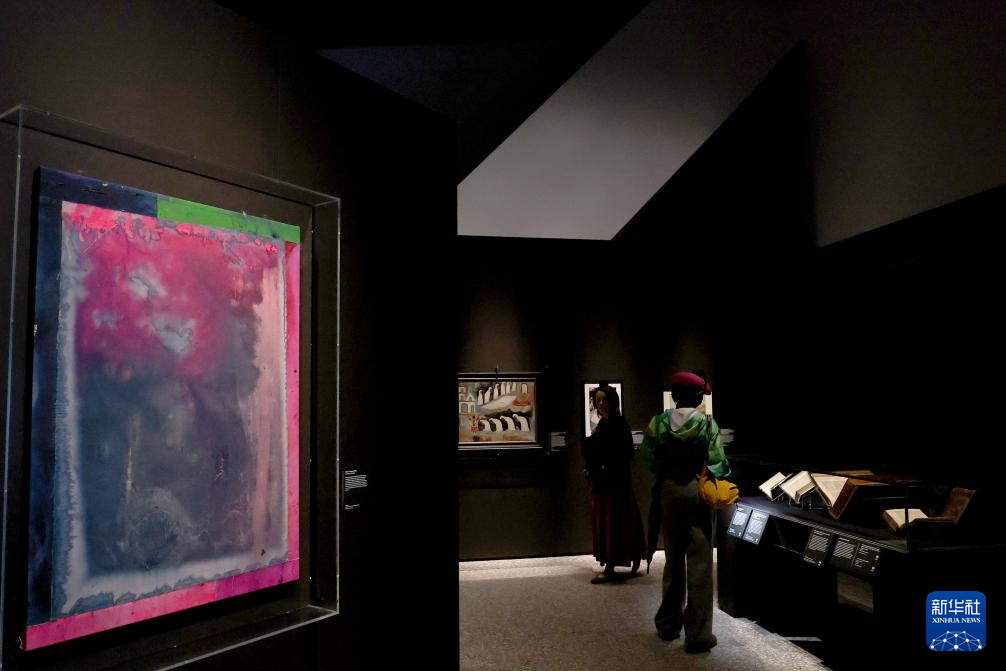 4月15日,在英国首都伦敦,一名女子在维多利亚与阿尔伯特博物馆东馆媒体日活动上观看影片。