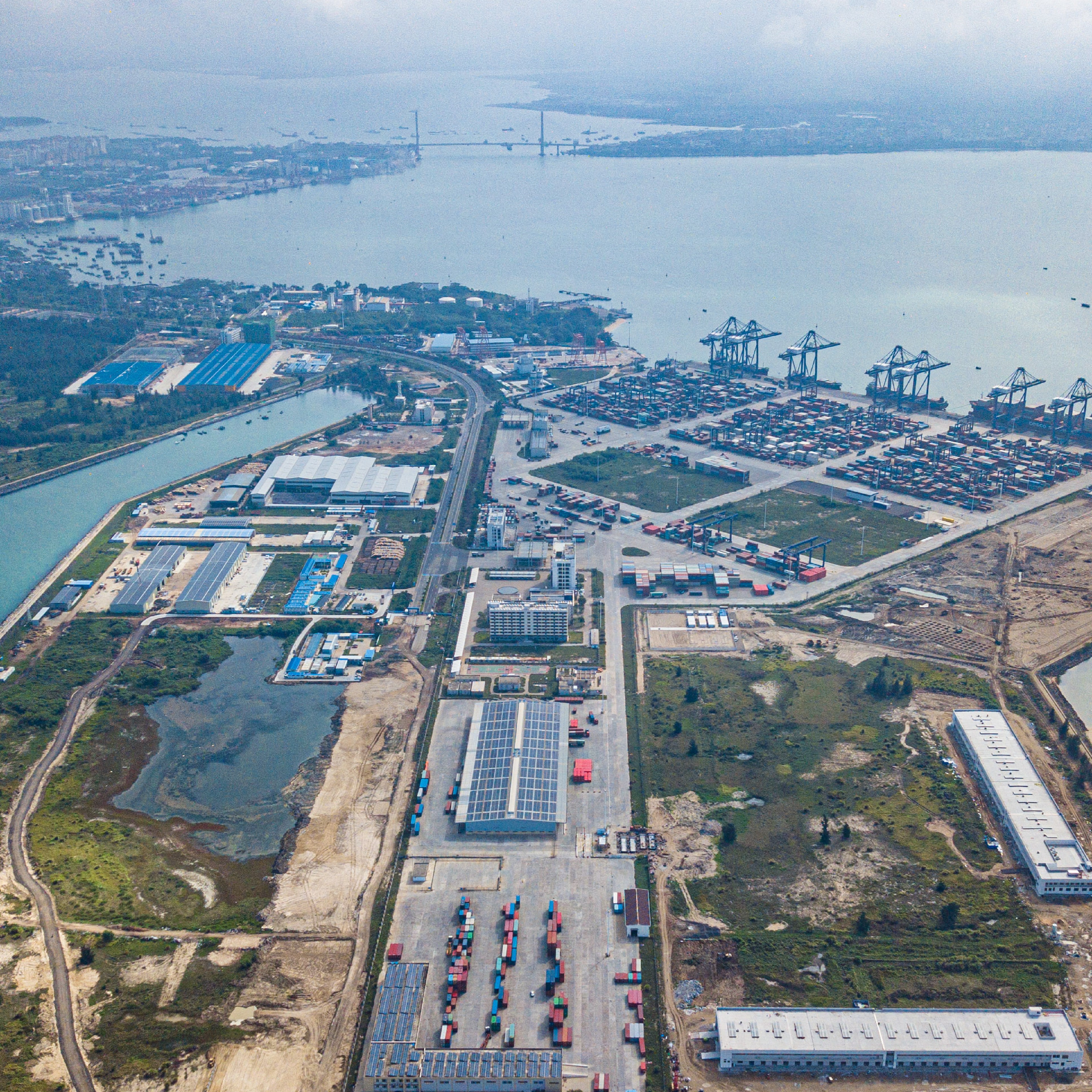 10月25日拍摄的洋浦港封关运作项目和洋浦国际集装箱码头(无人机照片)。新华社记者 蒲晓旭 摄