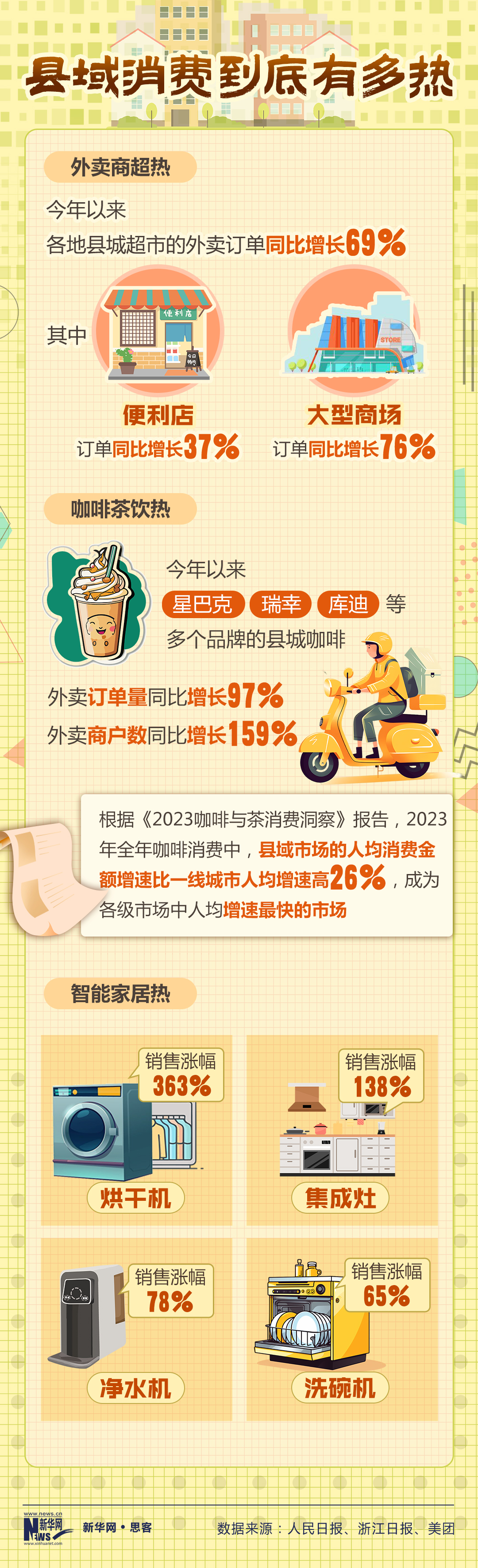 新潮的智能家居店、高人气的奶茶店、新颖的咖啡店……这些原来多属于大城市的消费场所,如今已越来越多出现在县域地区。近些年来,县域消费市场不断扩容,展现出强劲的活力,成为推动县域经济发展的重要因素。