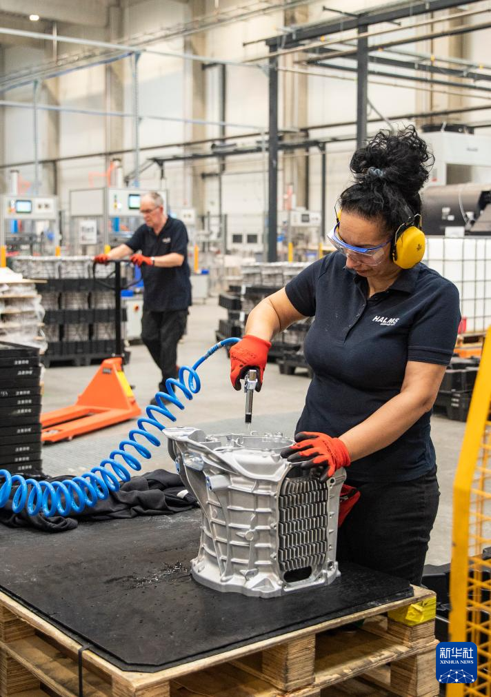 华朔科技是一家研发生产新能源汽车零部件的企业,目前在匈牙利和墨西哥都建设了工厂。其位于匈牙利德布勒森市的工厂去年投入量产,主要生产纯电汽车的电机内外壳和变速箱。记者看到,占地约1万平方米的厂房内,本地技术工人操作多台精密机床设备同时运转。