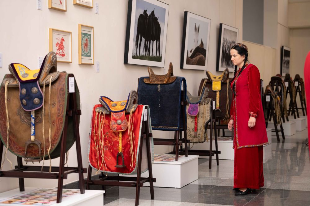 2025年6月3日,一名女子在土库曼斯坦首都阿什哈巴德参观“骐骥驰骋——2025中国马文化展”。新华社发