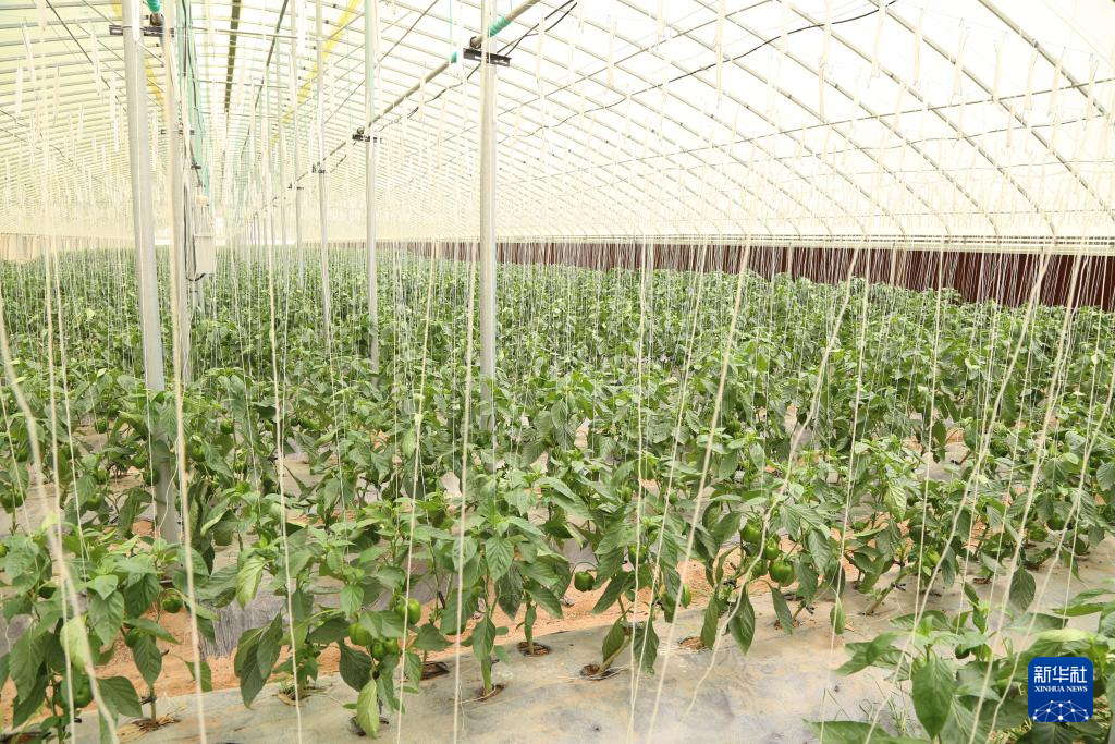 这是7月4日在阿联酋艾因地区阿联酋绿色硅谷产业园拍摄的彩椒种植区。 新华社记者 温新年 摄