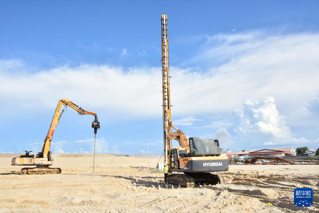 这是8月8日拍摄的文莱摩拉港集装箱码头扩建施工现场。新华社记者 李萌 摄