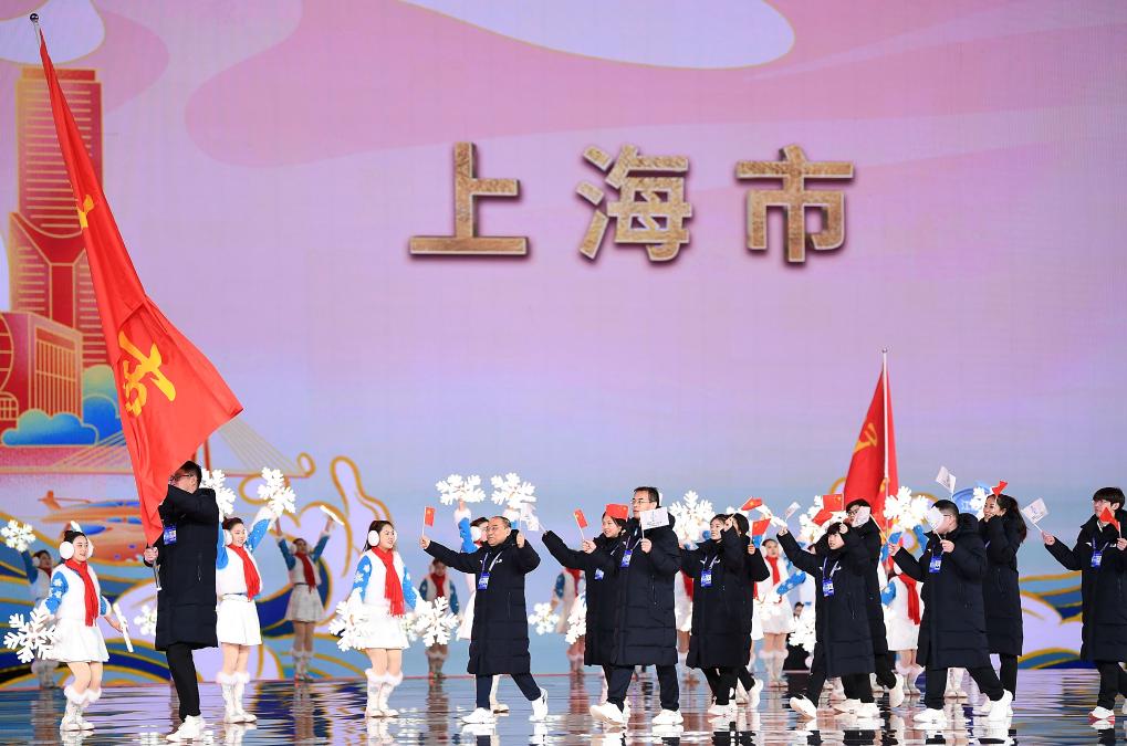 2月17日,上海市体育代表团在开幕式上入场。新华社记者 邓华 摄