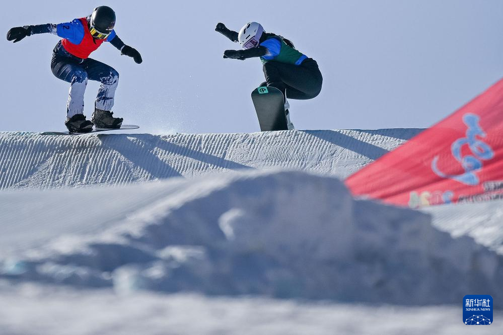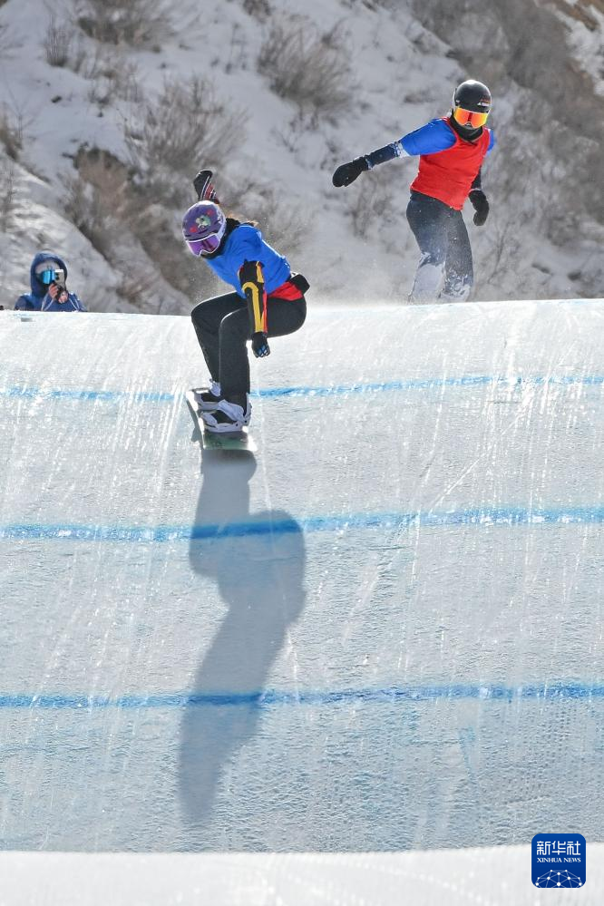 2月19日,西藏队选手拥青拉姆(前)和湖北队选手杨礼妍在比赛中。新华社记者 李志鹏 摄