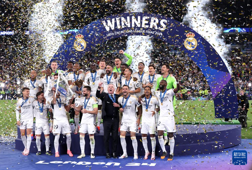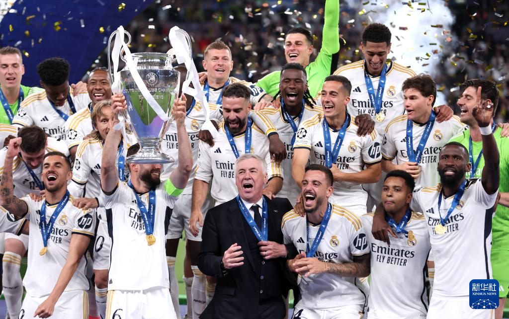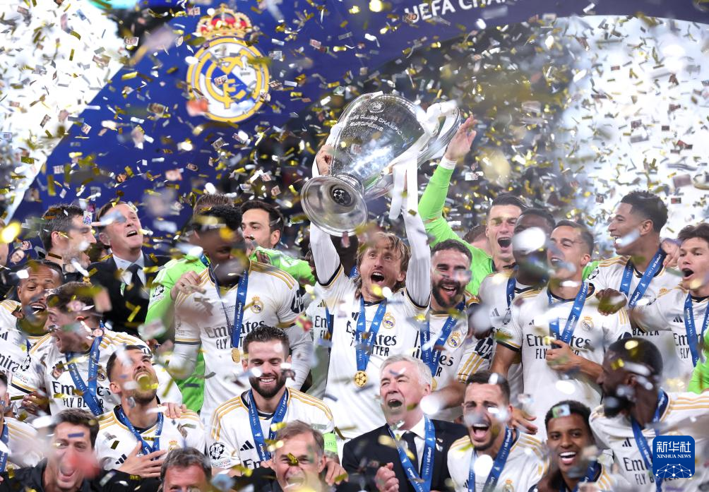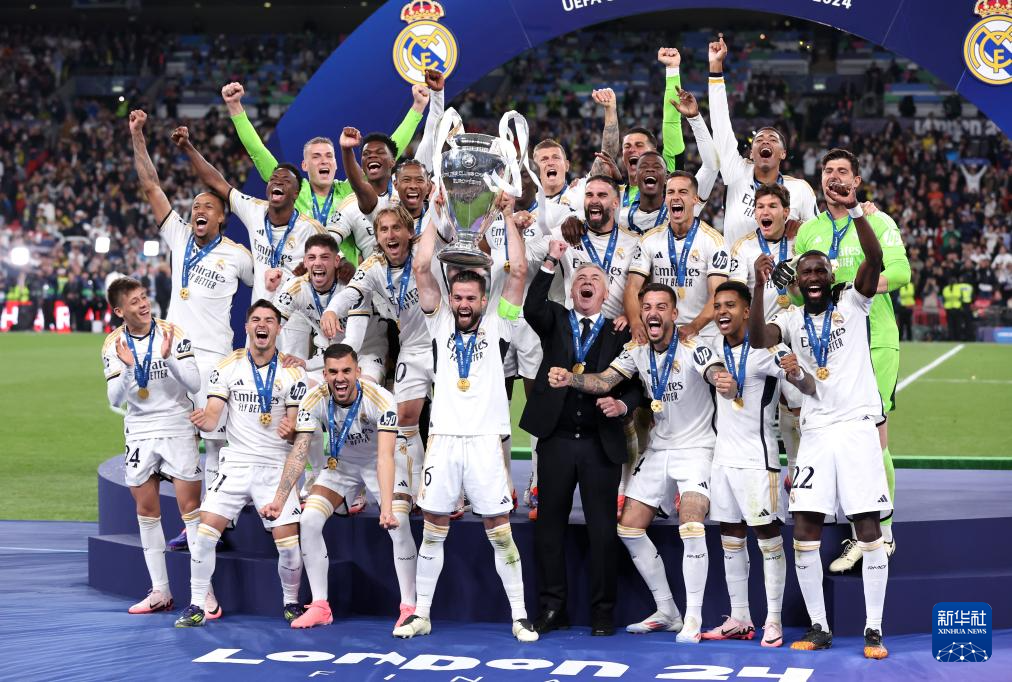 当日,在英国伦敦举行的2023-2024赛季欧洲足球冠军联赛决赛中,西甲皇家马德里队2比0战胜德甲多特蒙德队,夺得冠军。