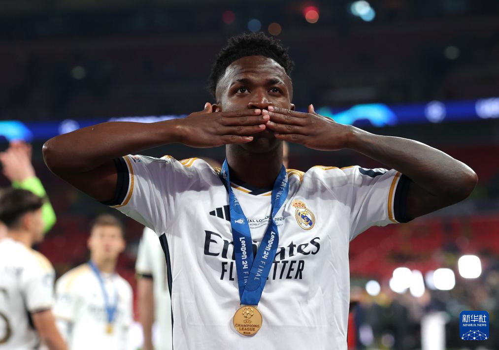 6月1日,皇家马德里队球员维尼修斯在比赛后庆祝。新华社发