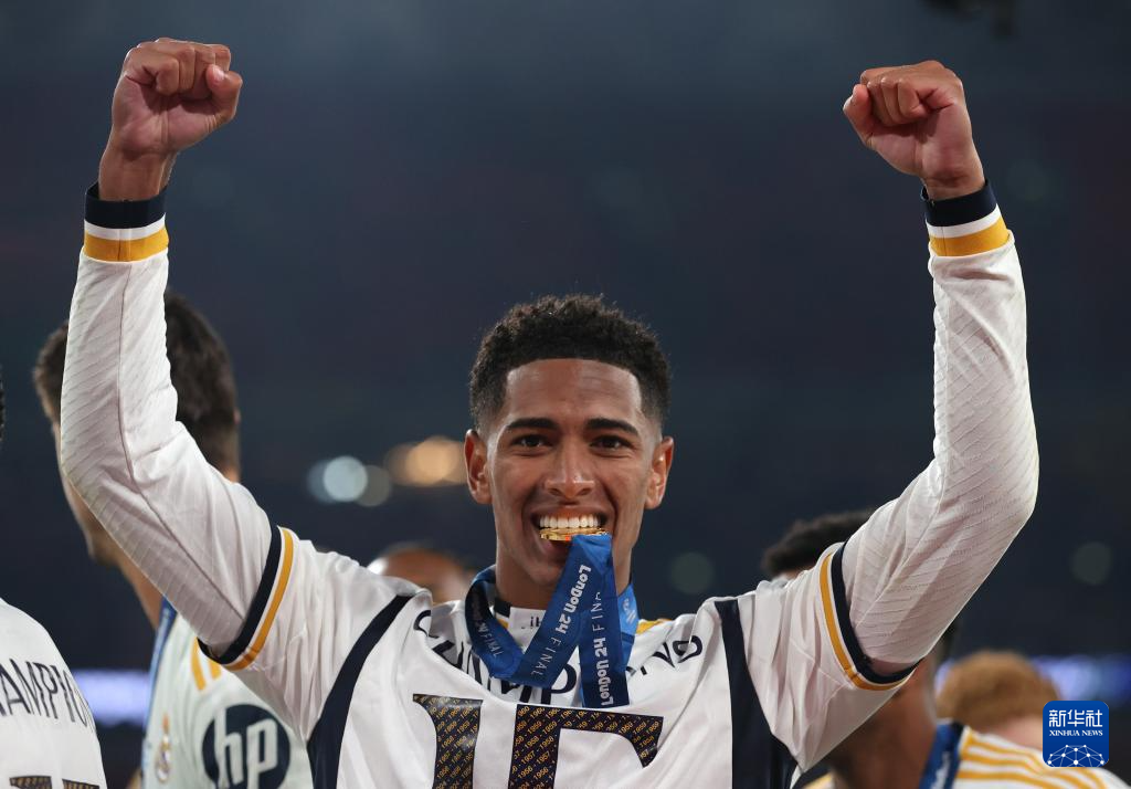 6月1日,皇家马德里队球员贝林厄姆在比赛后庆祝。新华社发