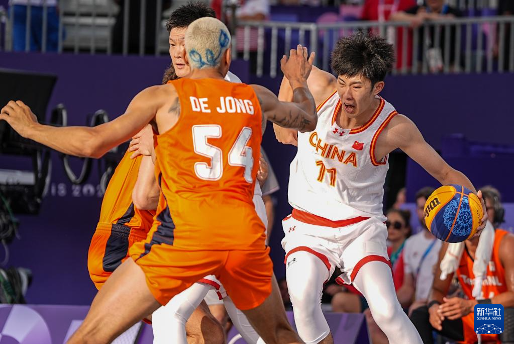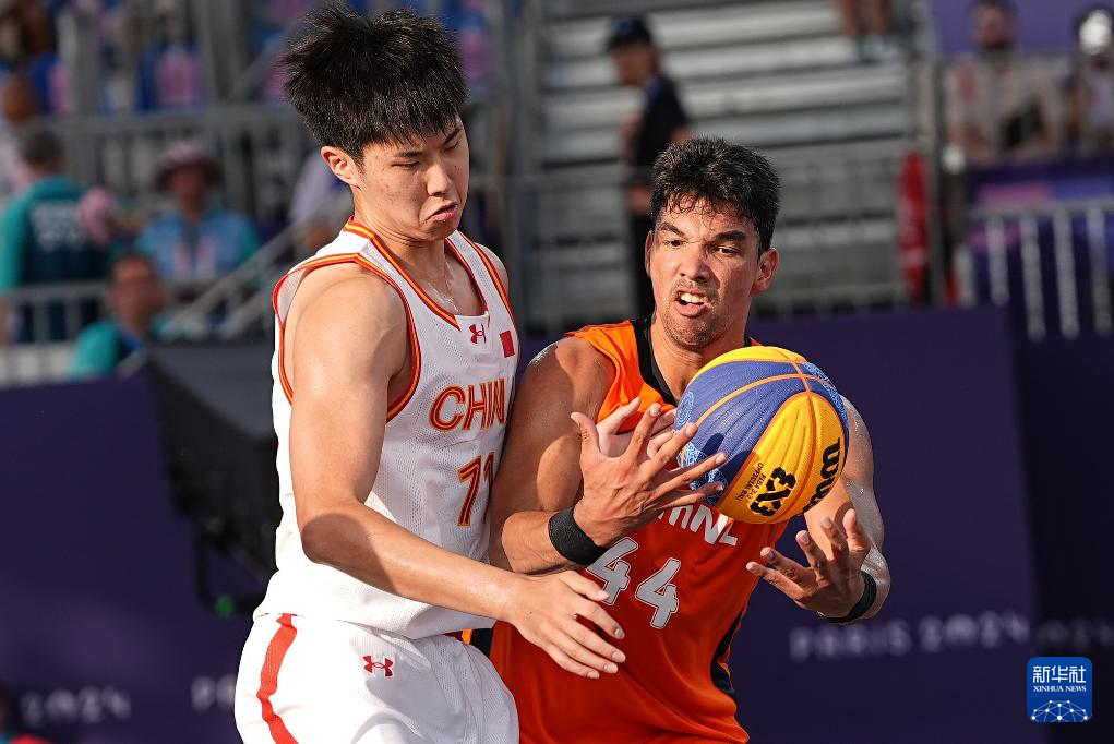 当日,在巴黎协和广场举行的巴黎奥运会三人篮球男子分组循环赛中,中国队16比21不敌荷兰队。