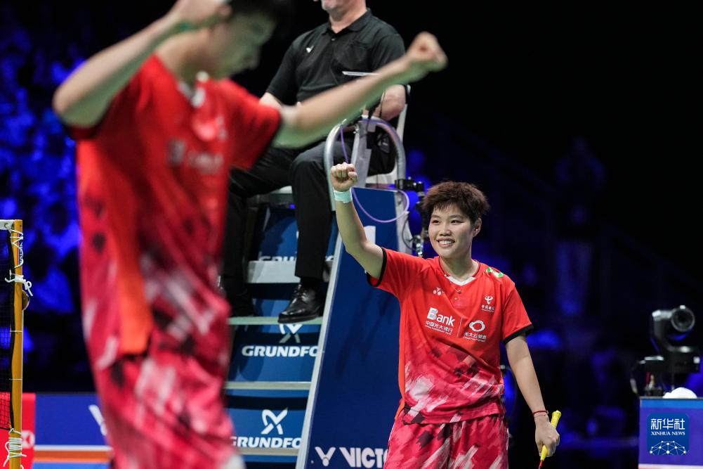 10月20日,冯彦哲/黄东萍(右)在比赛中庆祝。
