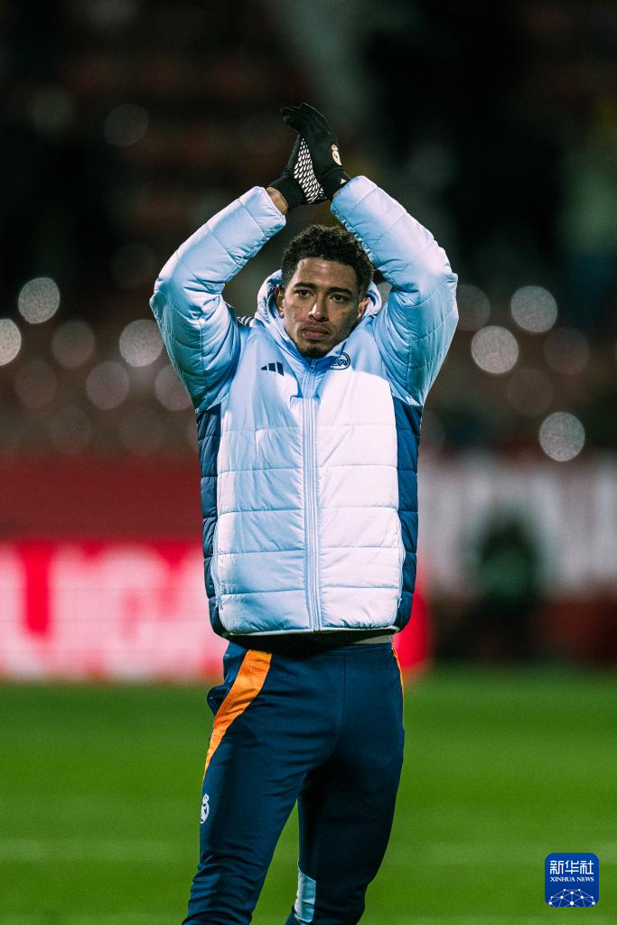 12月7日,皇家马德里队球员贝林厄姆在赛后庆祝胜利。