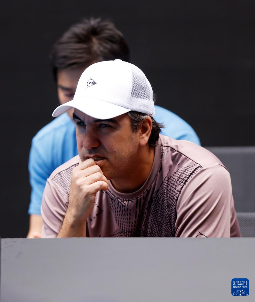 1月15日,郑钦文的教练丹特·博蒂尼在场边观赛。