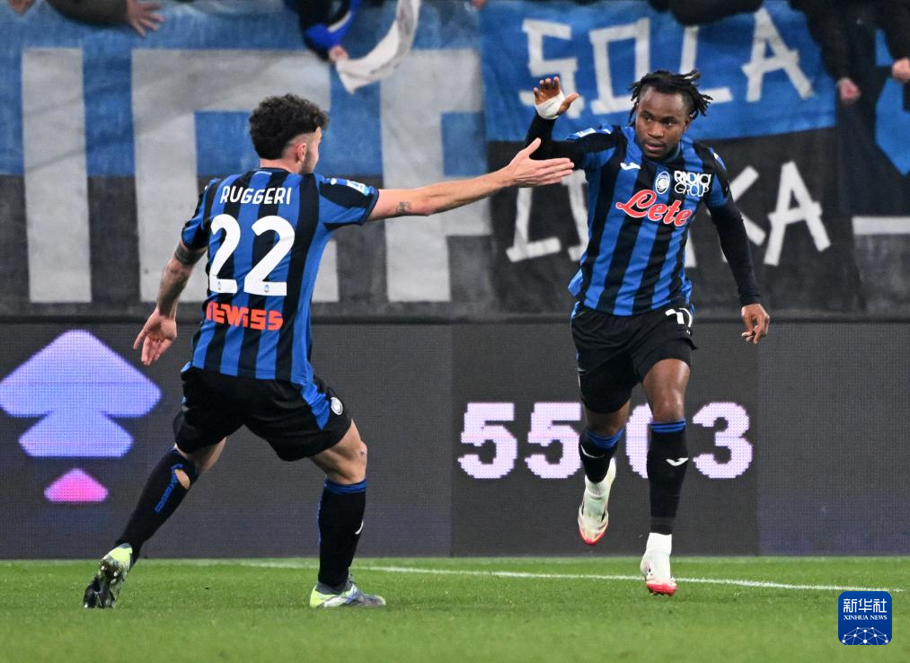 1月18日,亚特兰大队球员卢克曼(右)与队友鲁杰里庆祝进球。