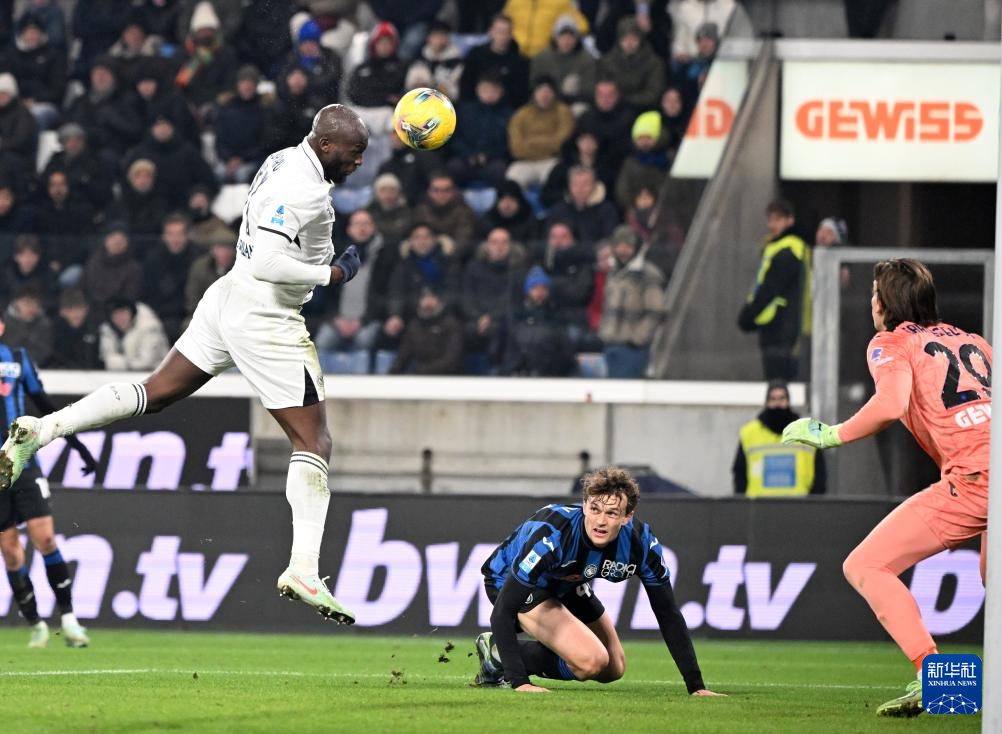 1月18日,亚特兰大队门将卡尔内塞基未能扑出那不勒斯队球员卢卡库的射门。