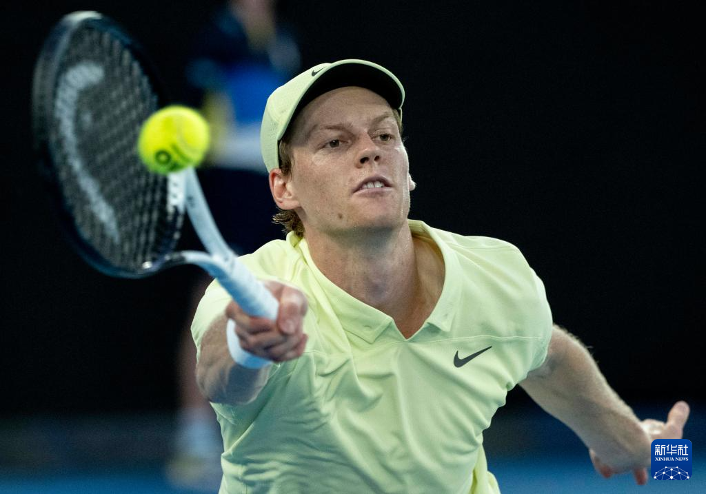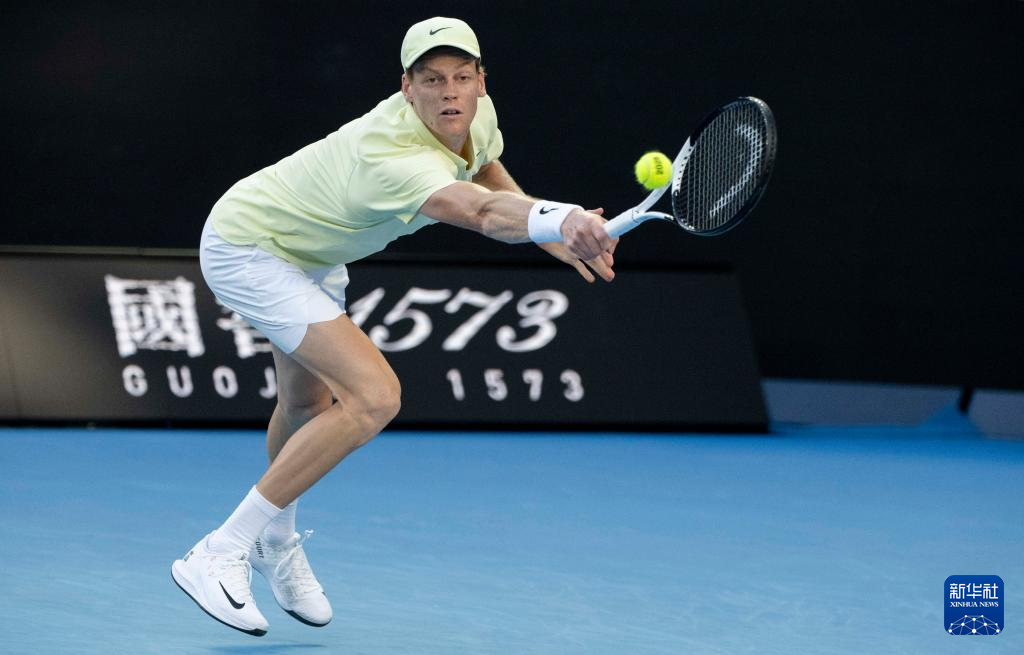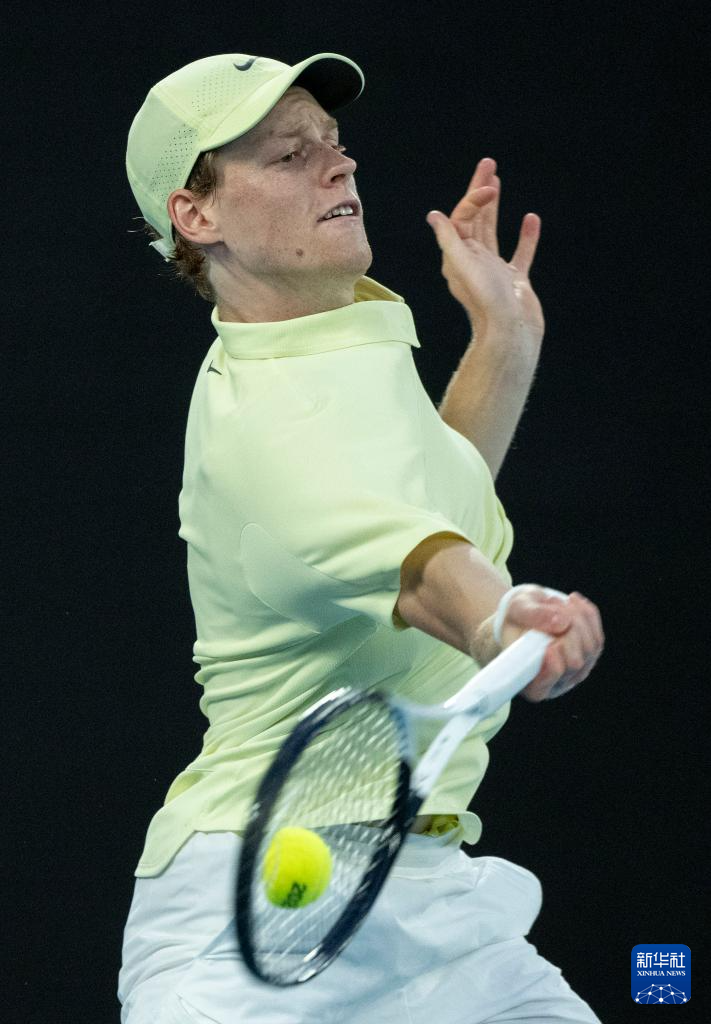 1月18日,辛纳在比赛中回球。