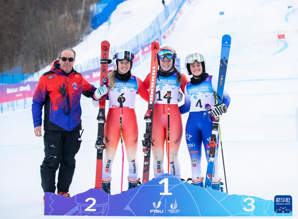 当日,2025年都灵大冬会高山滑雪女子大回转比赛在意大利巴多内基亚举行,瑞士选手皮勒、达尔贝莱和意大利选手切切雷分获冠、亚、季军。