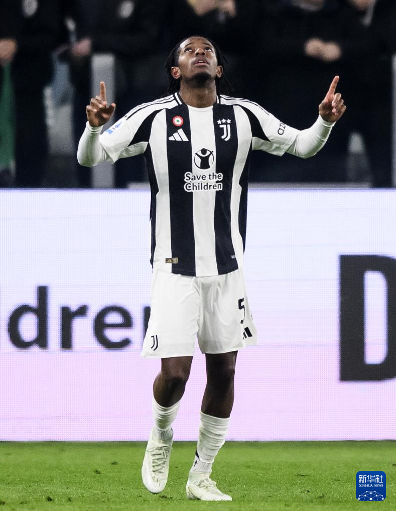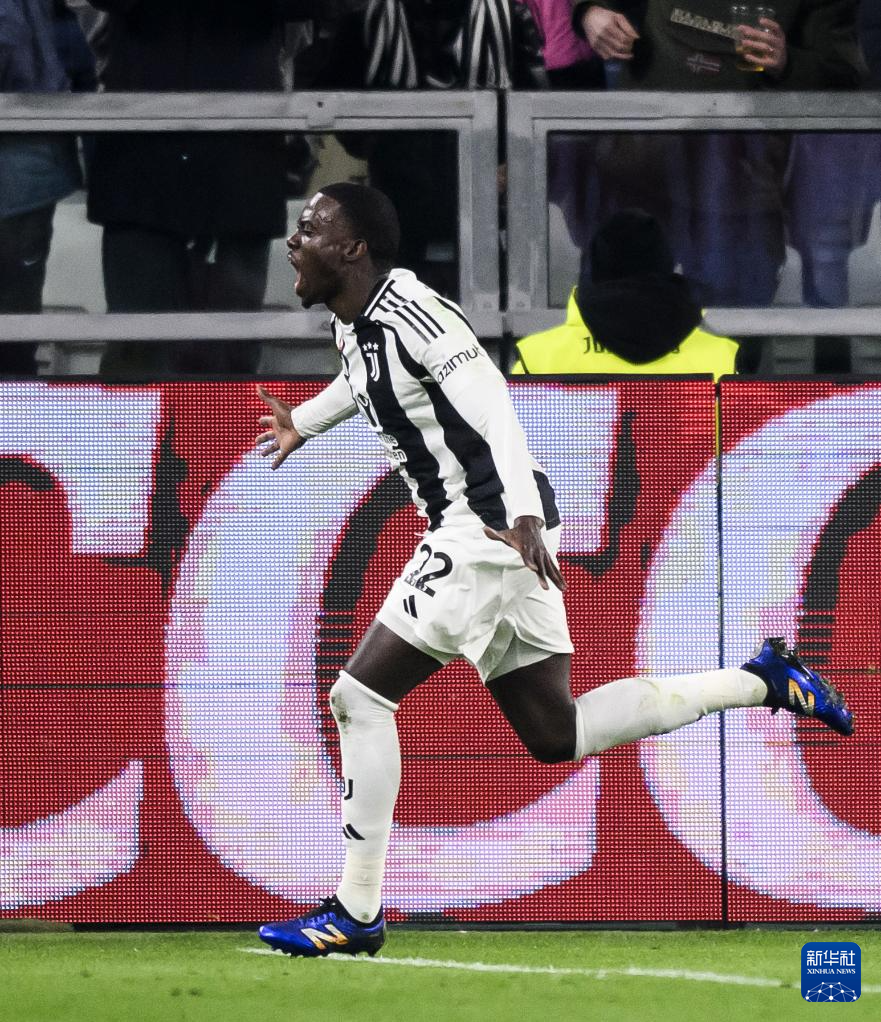 1月18日,尤文图斯队球员蒂莫西·维阿庆祝进球。