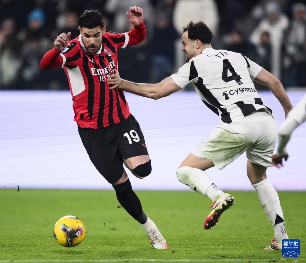 1月18日,尤文图斯队球员加蒂(右)与AC米兰队球员特奥·埃尔南德斯在比赛中拼抢。