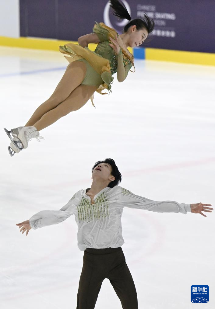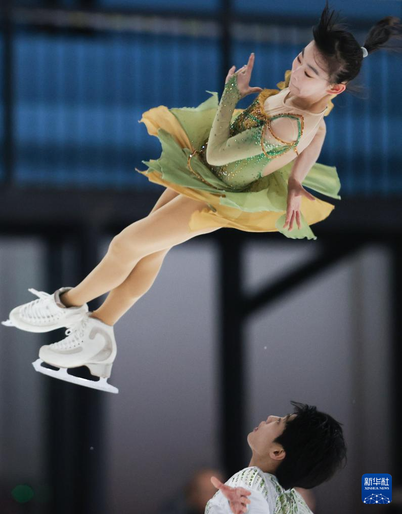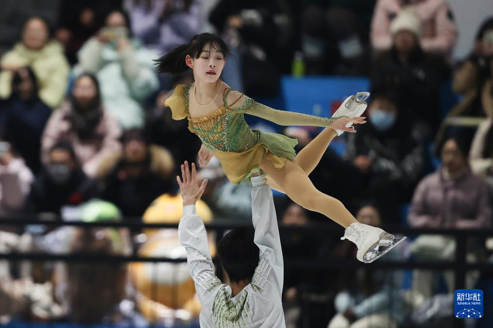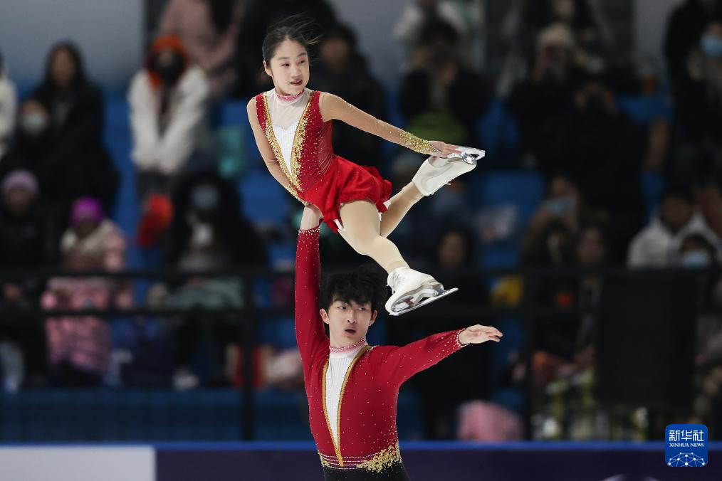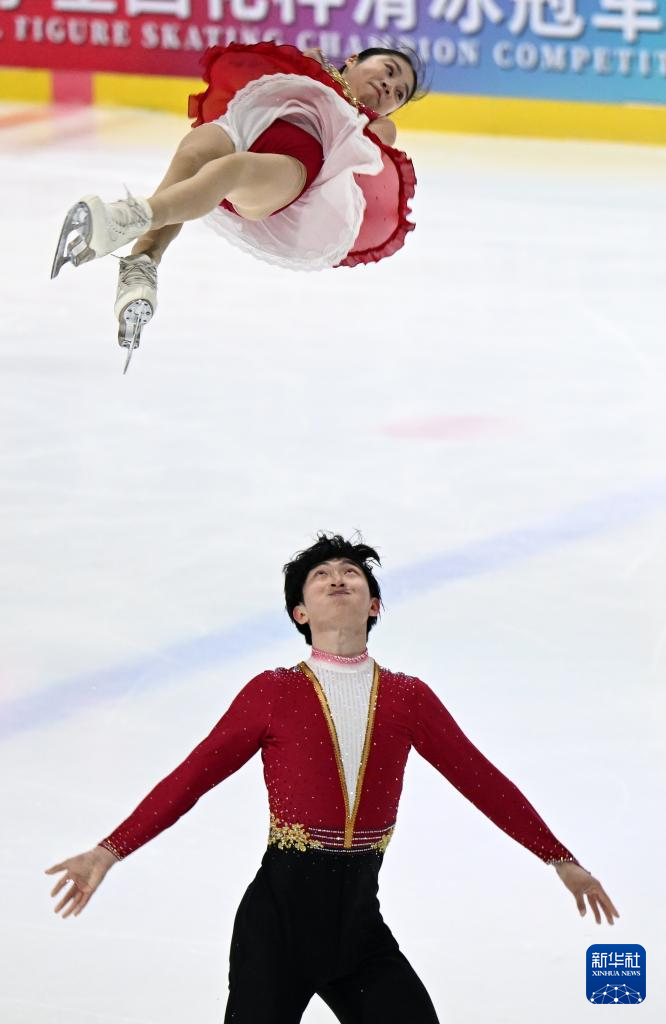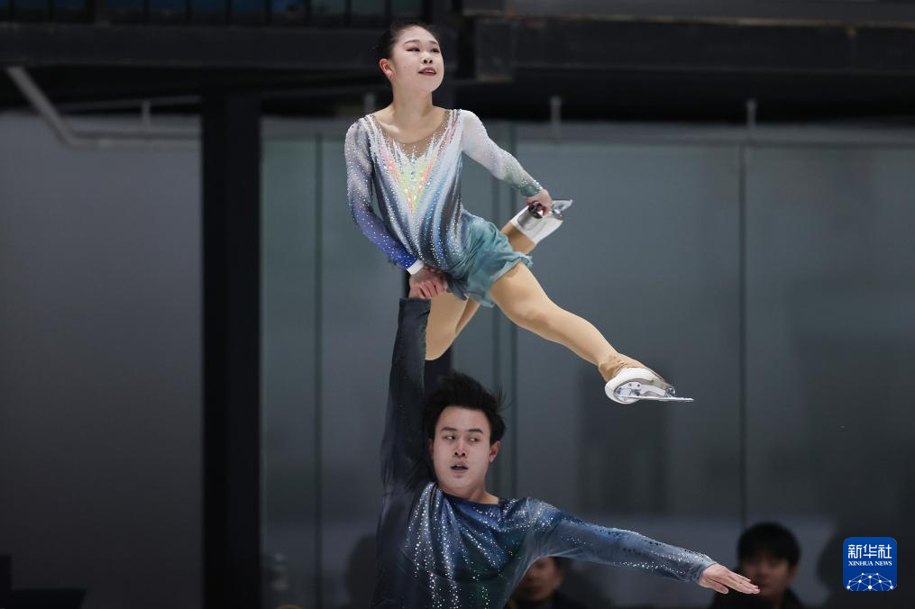 1月19日,齐齐哈尔市冬季运动项目中心(齐齐哈尔市滑冰学校)组合张轩绮(上)/丰闻强在双人滑自由滑比赛中。最终,他们获得双人滑亚军。
