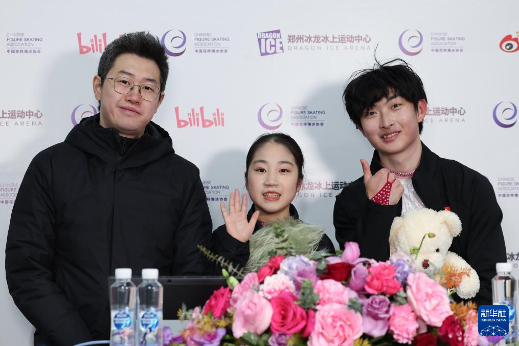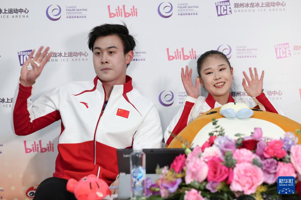 1月19日,齐齐哈尔市冬季运动项目中心(齐齐哈尔市滑冰学校)组合张轩绮(左)/丰闻强在双人滑自由滑比赛后。最终,他们获得双人滑亚军。