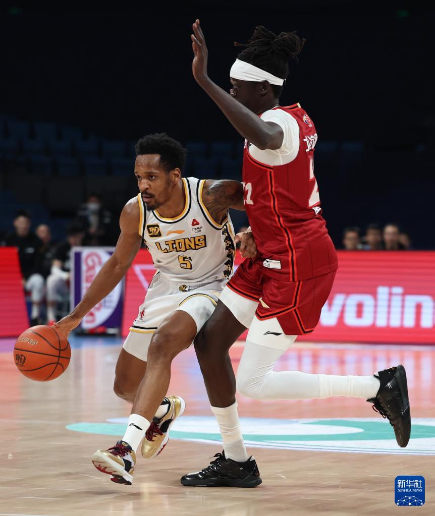 1月20日,北京北汽队球员所罗门(左)在比赛中上篮。