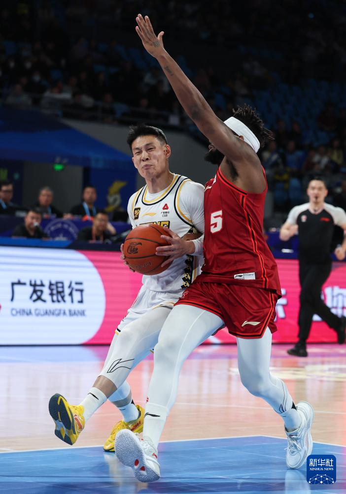 1月20日,北京北汽队球员曾凡博(右)在比赛中进攻。