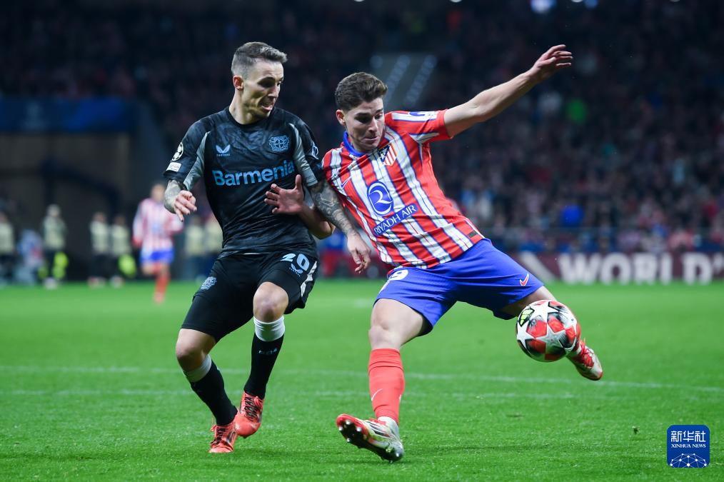 当日,在2024-2025赛季欧冠联赛阶段第7轮比赛中,西甲马德里竞技队主场2比1战胜德甲勒沃库森队。