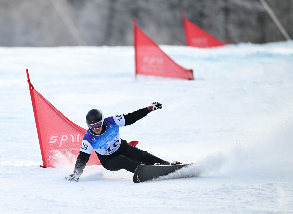 意大利阿尔卑斯山区滑雪小镇巴多内基亚,21日举行了第32届世界大学生冬季运动会单板滑雪男子平行大回转的比赛。北京体育大学大二学生丁雪东在16进8的比赛中遭遇淘汰,最终位列第14名。