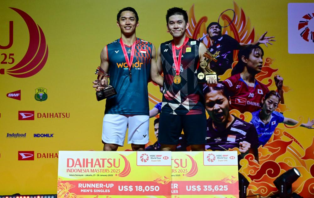 1月26日,冠军泰国选手昆拉武特(右)和亚军印度尼西亚选手乔纳坦在颁奖仪式上。新华社发(祖卡南摄)