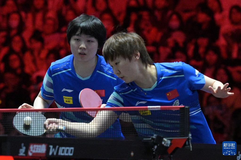 2月8日,孙颖莎/王艺迪(左)在比赛中。