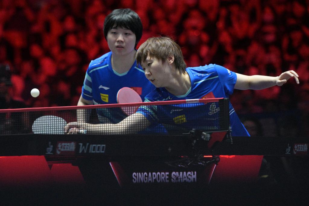 两对国乒组合会师女双决赛,王曼昱/蒯曼以3:2险胜孙颖莎/王艺迪。这是蒯曼继混双项目之后,在本站获得的第二冠。