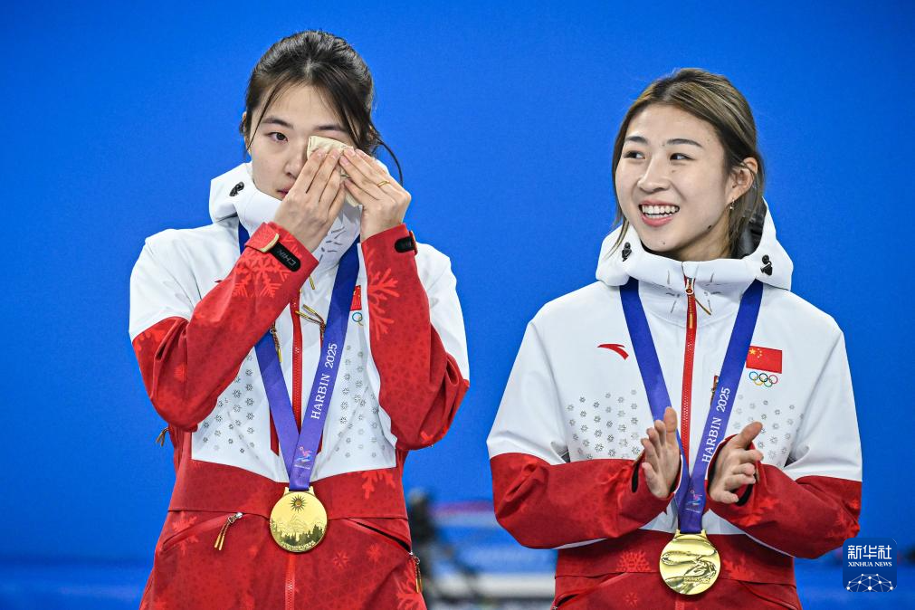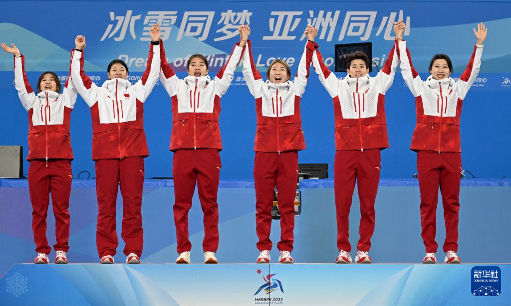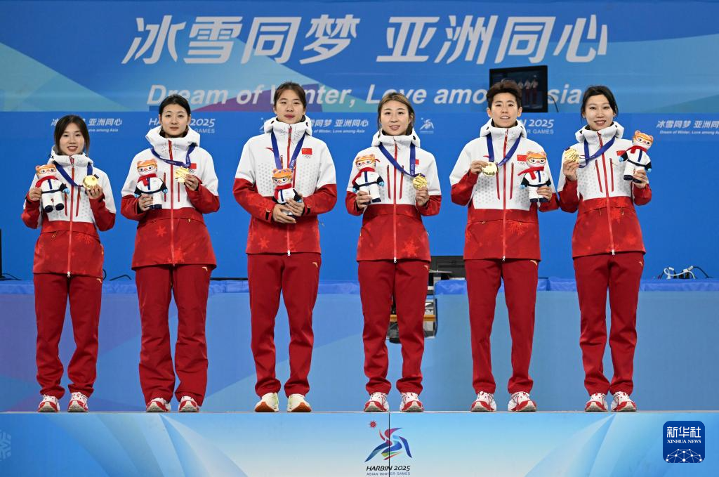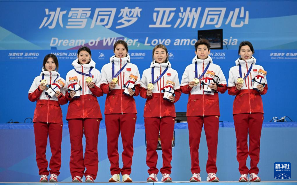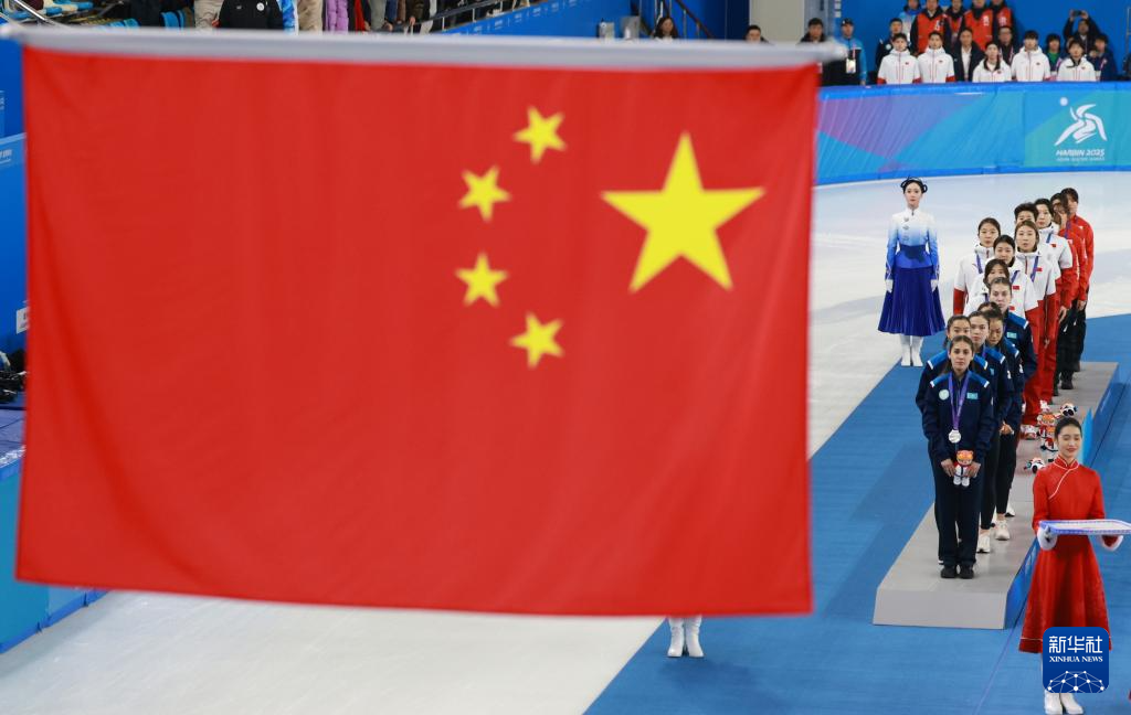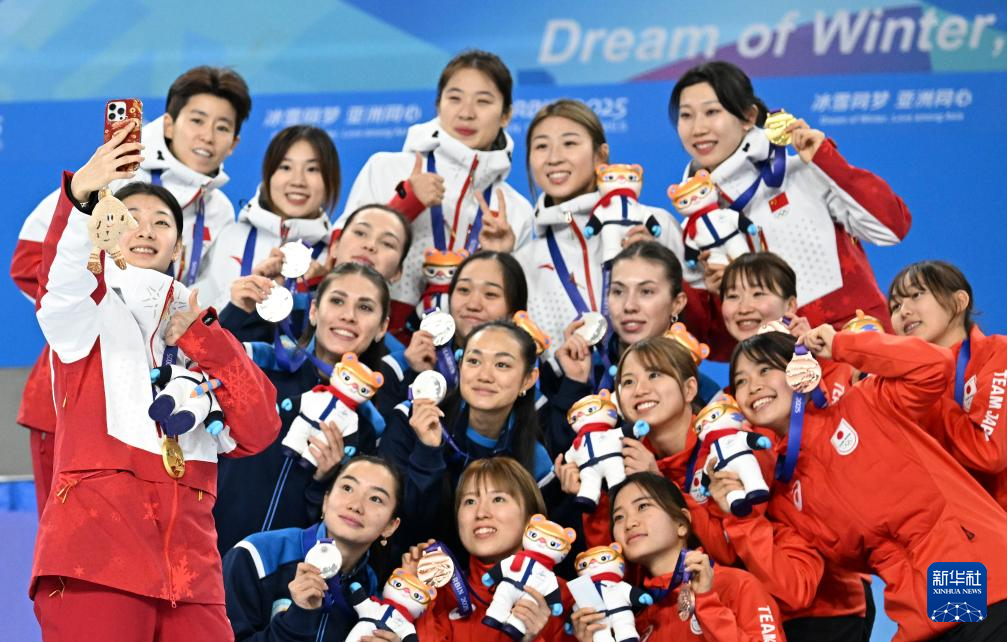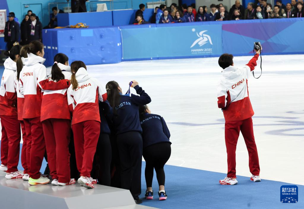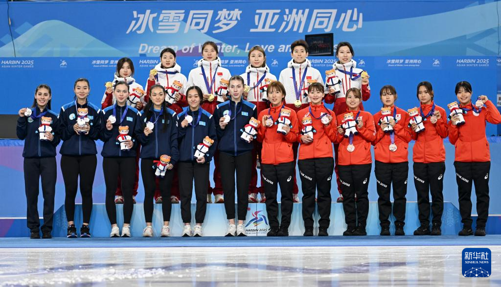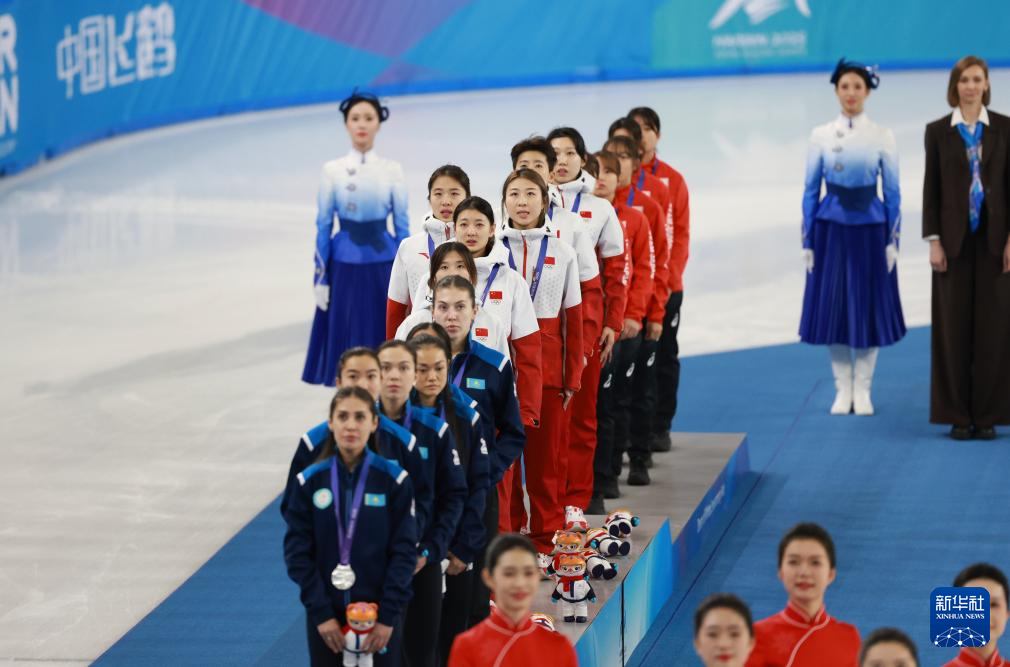 当日,第九届亚冬会短道速滑女子3000米接力比赛颁奖仪式在哈尔滨举行。