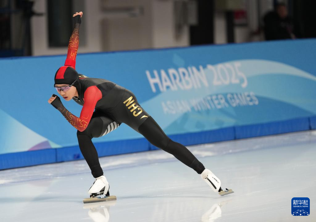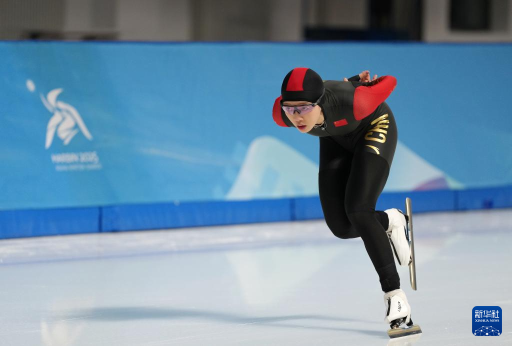 当日,第九届亚冬会速度滑冰女子1500米比赛在哈尔滨举行。