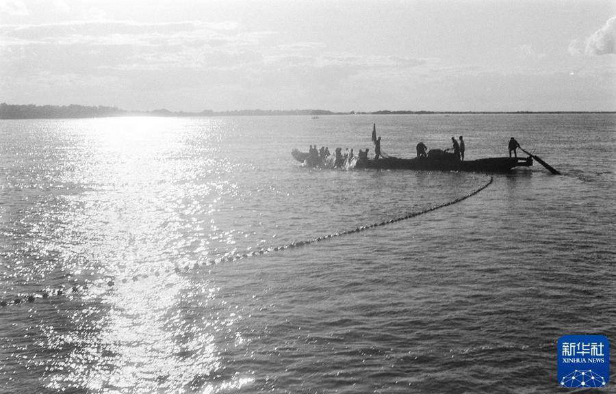 20世纪60年代初,赫哲族渔工们下网捕鱼。新华社记者 佟德印 摄