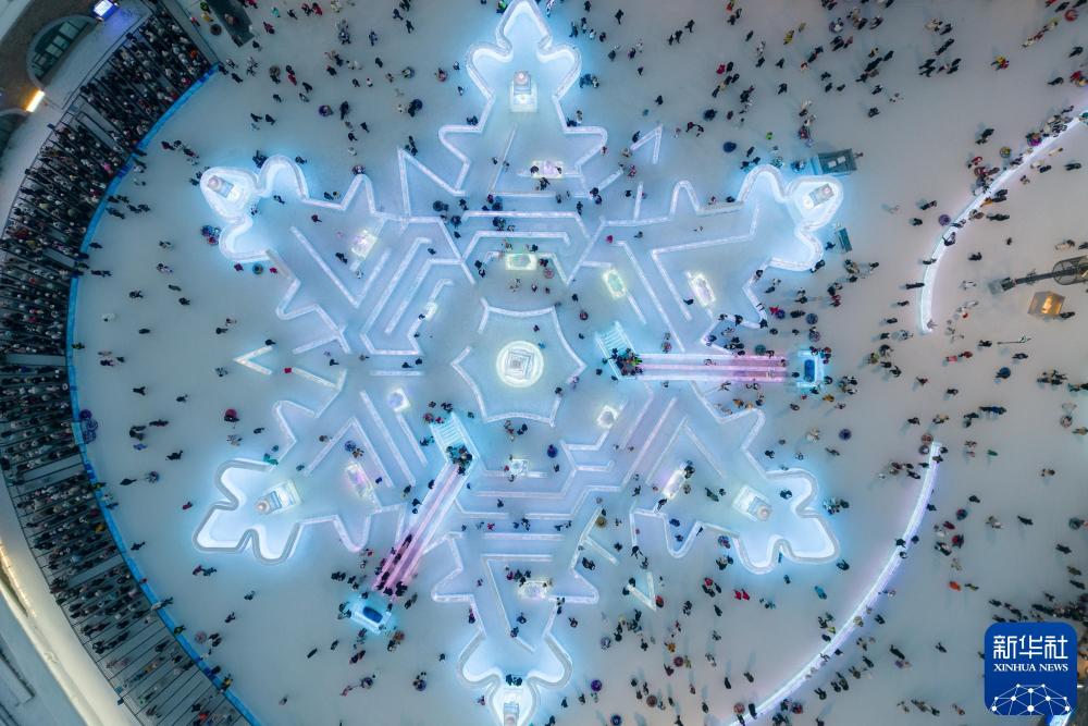 2025年1月23日,游客在哈尔滨冰雪大世界园区内游览。新华社记者 张涛 摄
