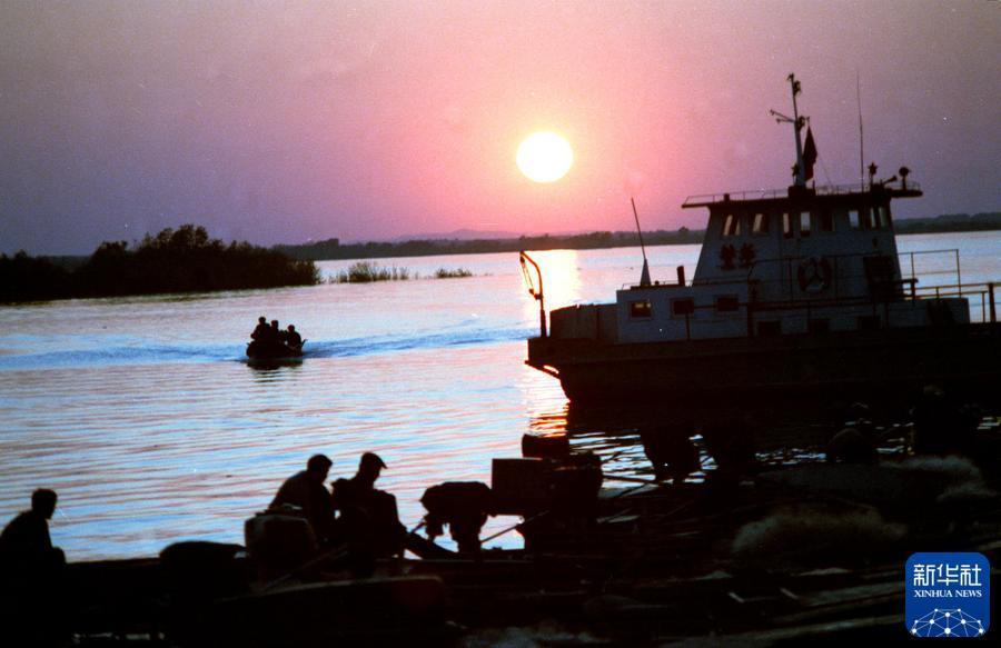 1988年夏,夕阳红遍赫哲族渔乡。新华社记者 何宗跃 摄