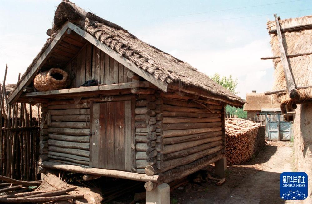 这是1988年拍摄的赫哲人的“鱼楼”,它是用圆木搭起来的,用来贮存鱼干和粮食。新华社记者 刘向阳 摄