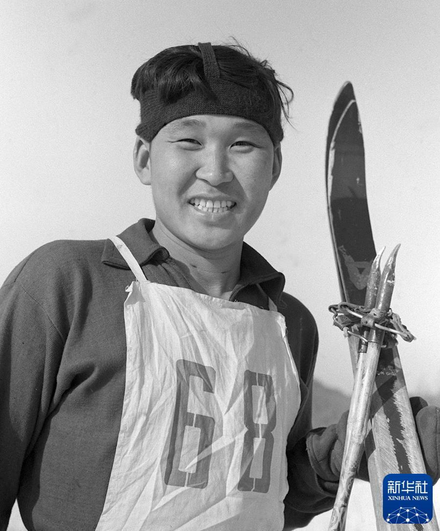 1960年全国滑雪运动会少年男子8公里和10公里两项速滑冠军获得者——由满昌。这个赫哲族少年从小就跟着父兄狩猎、捕鱼,培养了坚毅勇敢的性格和健壮的身体。新华社记者 刘恩泰 摄