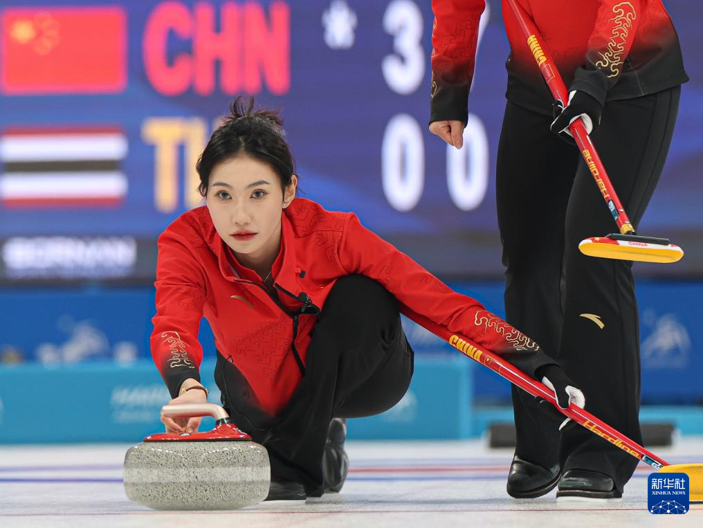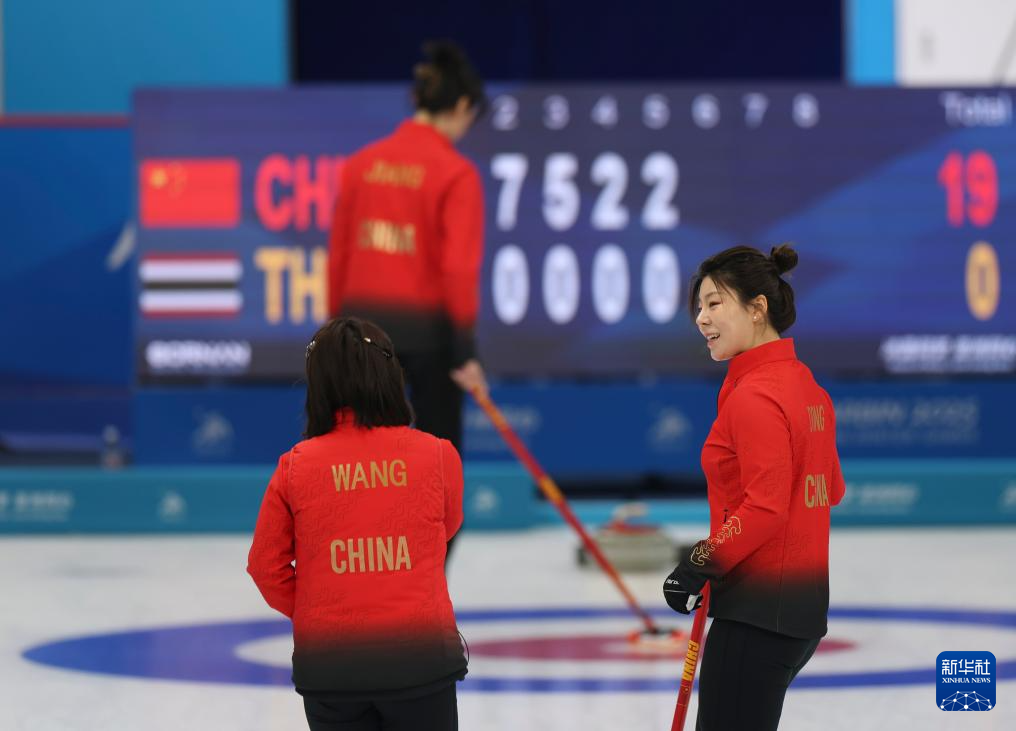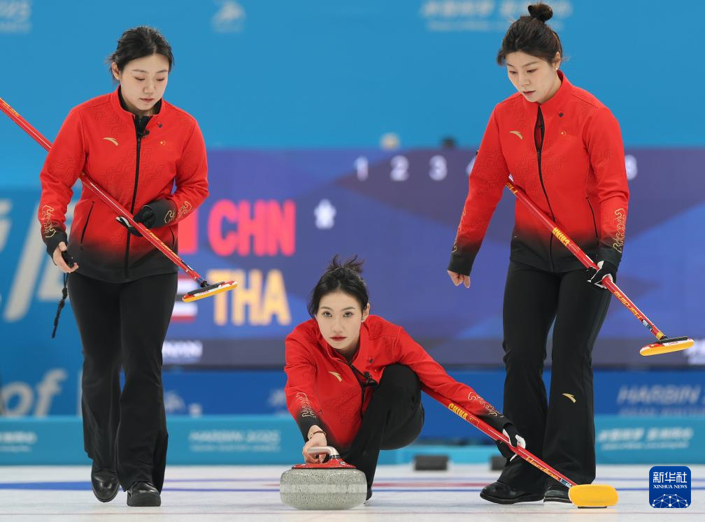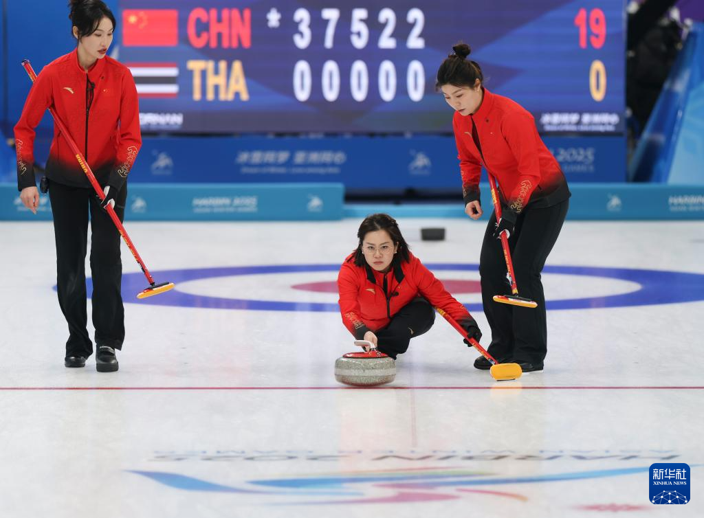 当日,在哈尔滨举行的第九届亚冬会冰壶女子循环赛第一轮比赛中,中国队19比1战胜泰国队。