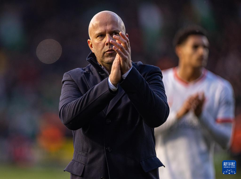 2月9日,利物浦队主教练斯洛特在比赛后向球迷致意。