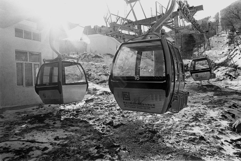 一条全自动运行的吊厢式索道在黑龙江亚布力滑雪场投入使用。这条索道全长3091米,共有吊厢39节,每节容纳6人,与另两条2人吊椅式索道并行后,每小时载客量达1000人。这条索道的建成,大大方便了参加第三届亚冬会雪上项目的运动员上山。新华社记者 何宗跃 摄(1996年1月15日发)