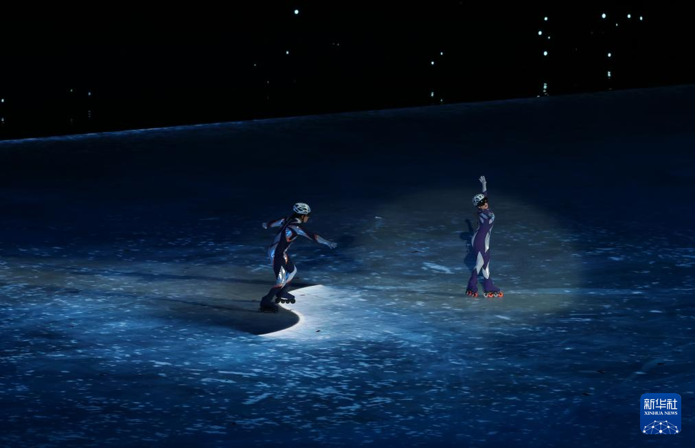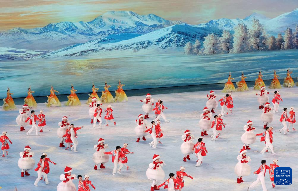 这是2月14日在闭幕式上拍摄的下一届亚冬会主办城市带来的展演。