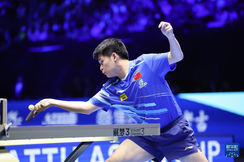 2月19日,林诗栋在比赛中回球。新华社记者 梁旭 摄