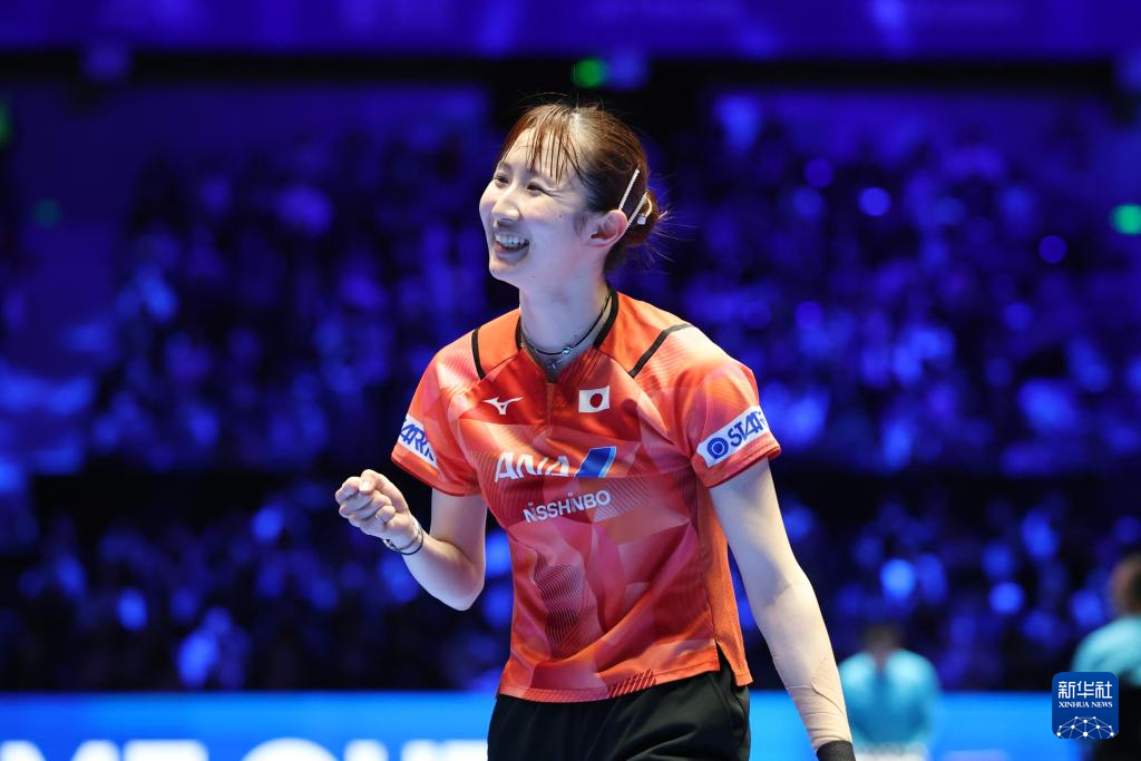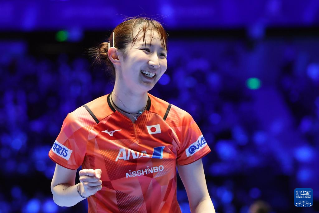 2月19日,早田希娜在比赛获胜后露出笑容。