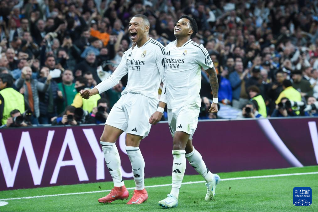 当日,在西班牙马德里举行的2024-2025赛季欧冠淘汰赛附加赛次回合比赛中,西甲皇家马德里队主场3比1战胜英超曼彻斯特城队,晋级十六强。