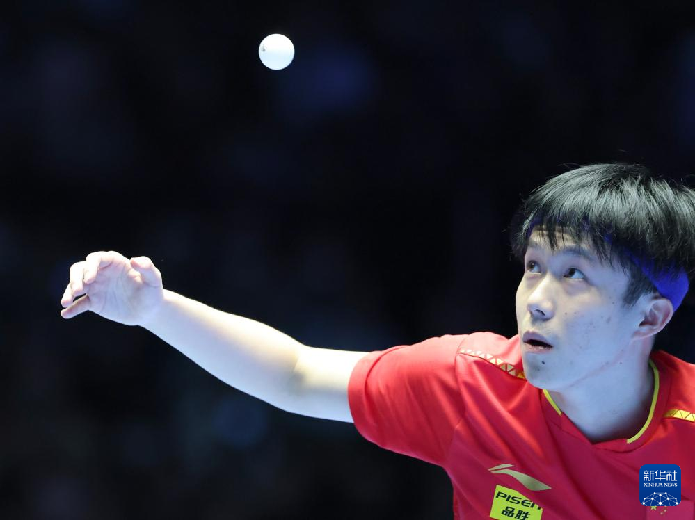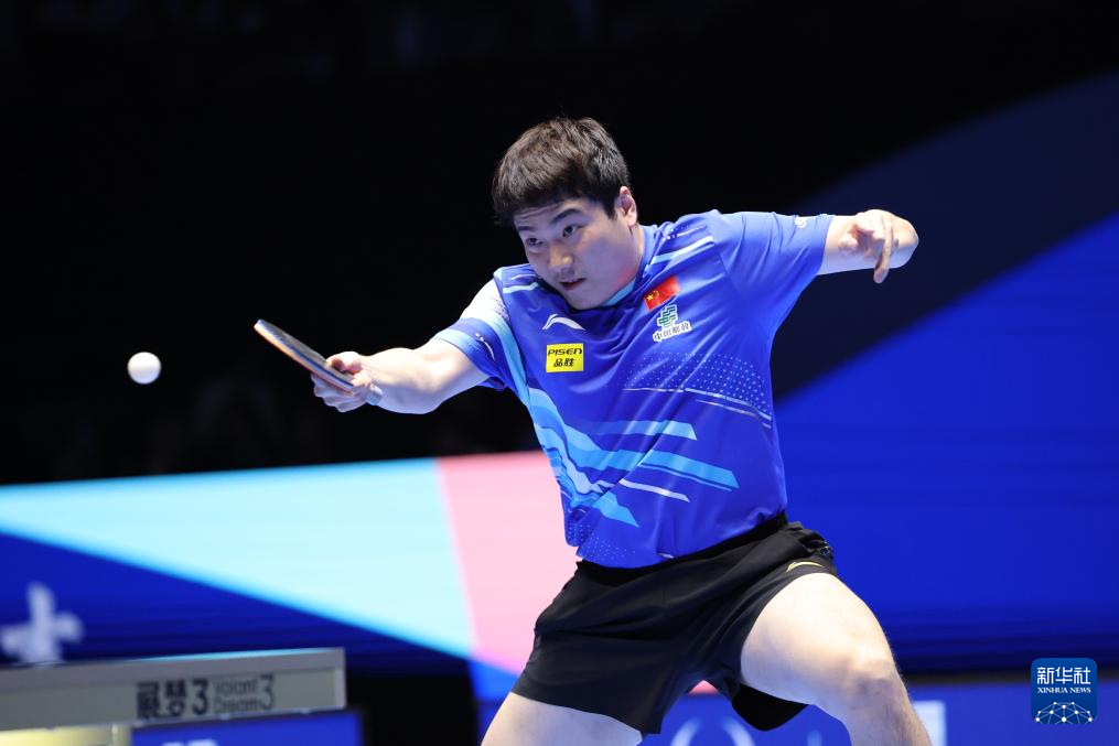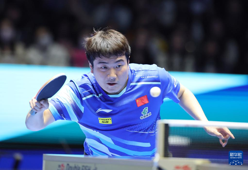 2月23日,王楚钦在比赛中回球。